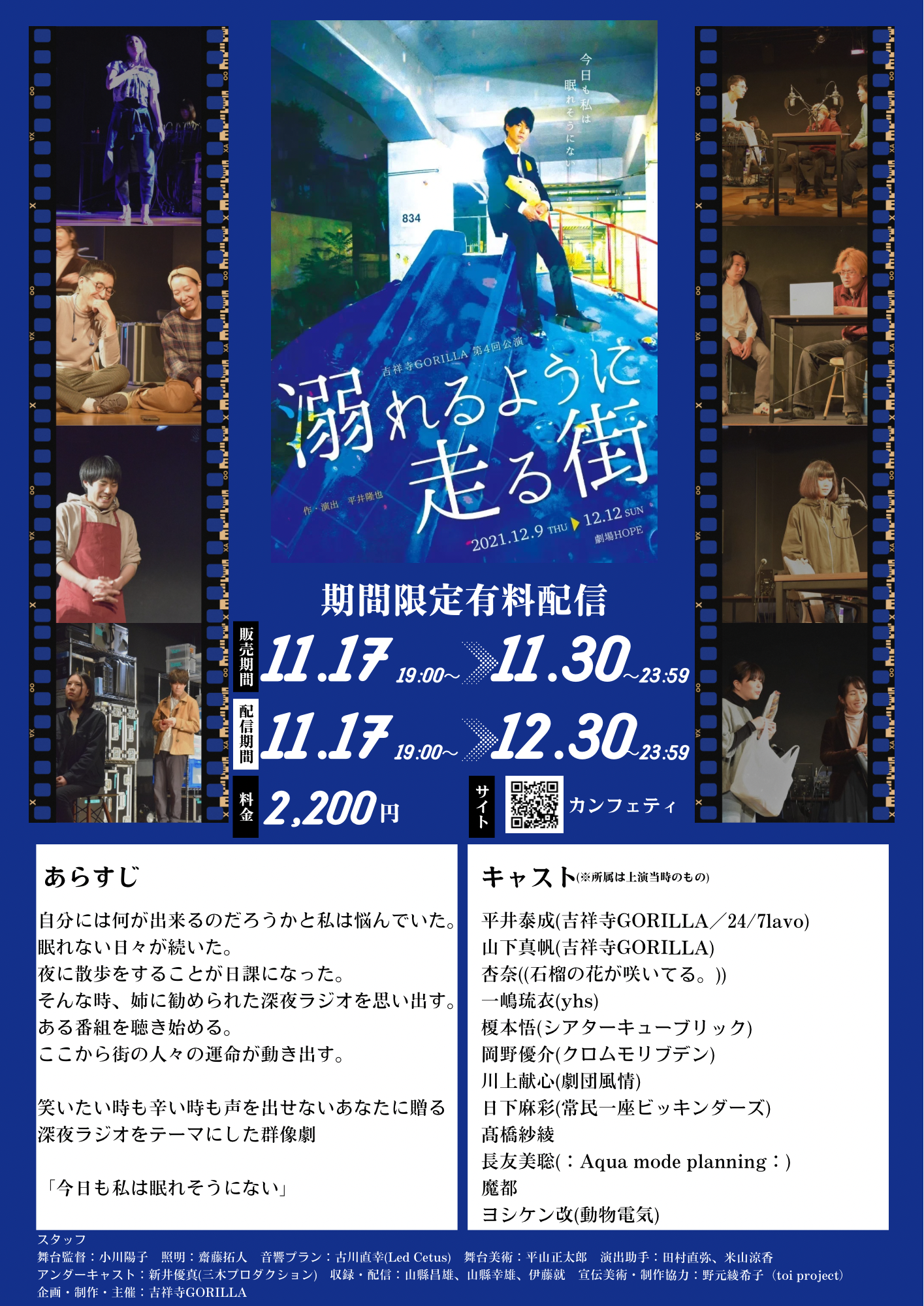 第4回公演「溺れるように走る街」の映像を、11月30日(日)23:59まで有料配信しております。